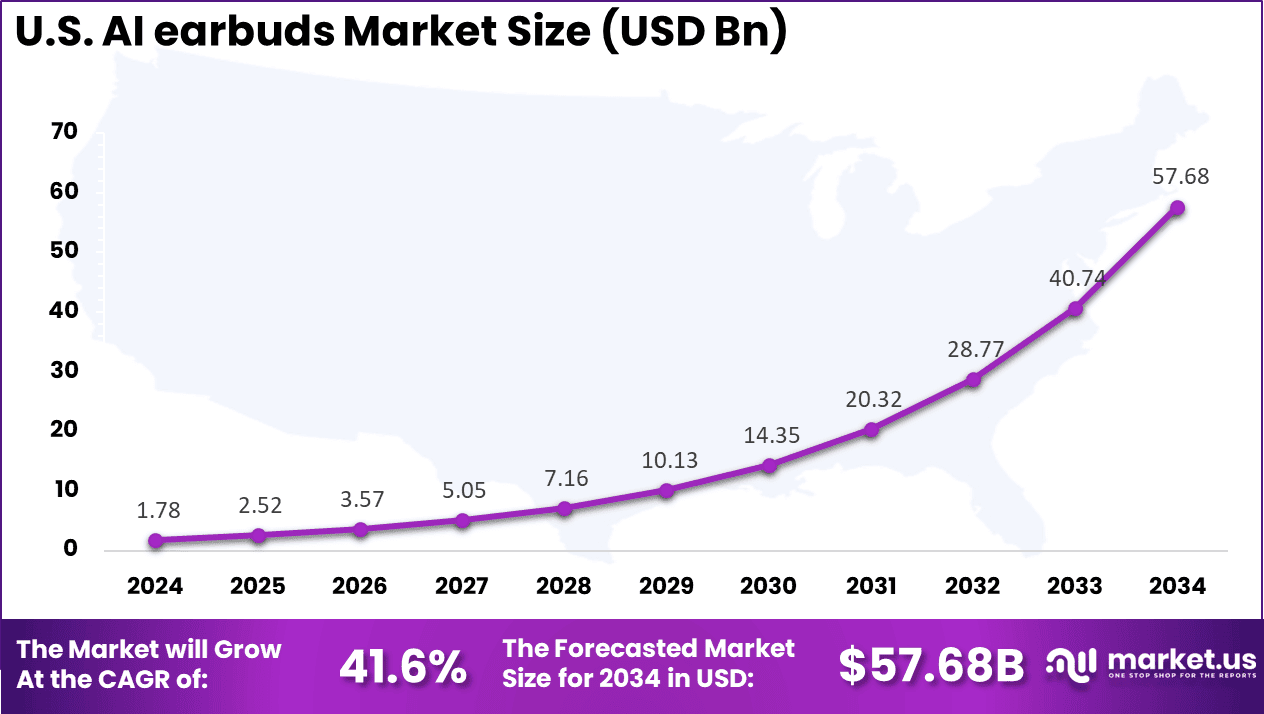 • The U.S. AI earbuds market is expanding quickly and is currently valued at USD 1.78 Billion, showing strong momentum across the country.