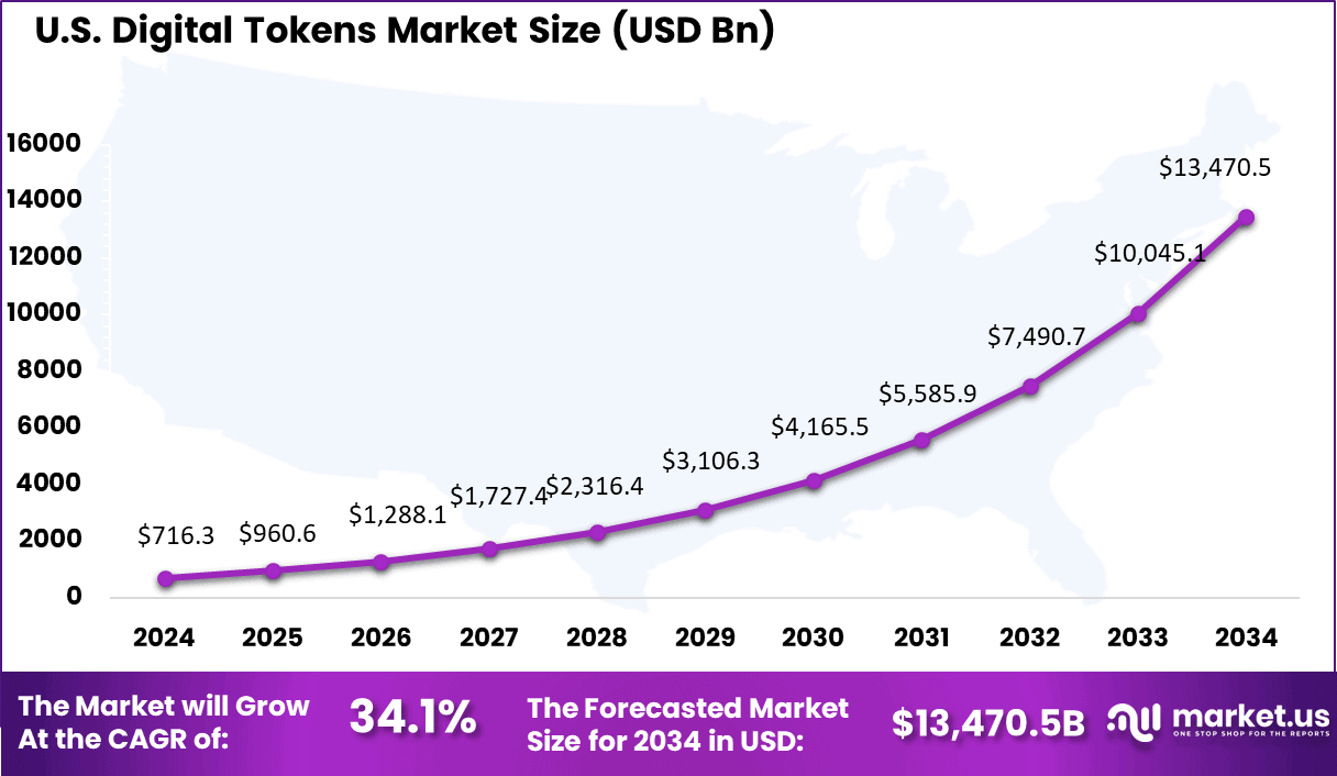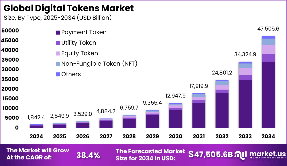 - The overall market is reported to be growing at a compound annual growth rate of nearly 34.1%, indicating that digital tokens are being used more widely for payments, investments, and other financial applications.