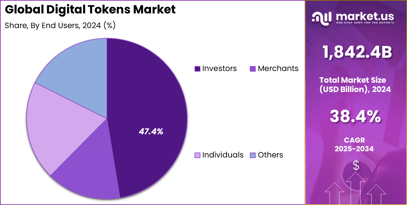- Investors represented 47.4% of all end users in 2024, which confirms that digital tokens were used mainly for investment-driven purposes rather than everyday transactions. This dominance shows that investors continue to treat tokens as a structured financial asset that can strengthen portfolio diversification.