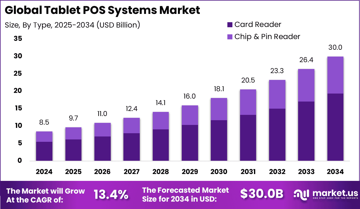 - Tablet POS systems market expected to grow at a CAGR of 13.4% from 2025 to 2034